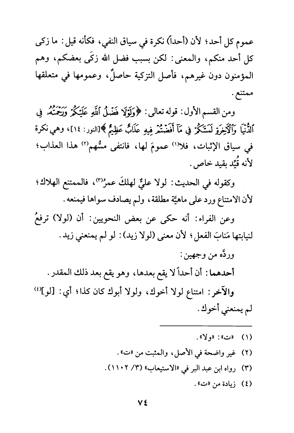 وكقوله في الحديث: لولا عليٌّ لهلكَ عمرُ (¬3)، فالممتنع الهلاك؛ لأن الامتناع ورد على ماهيَّة مطلقة، ولم يصادف سواها فيمنعه.
