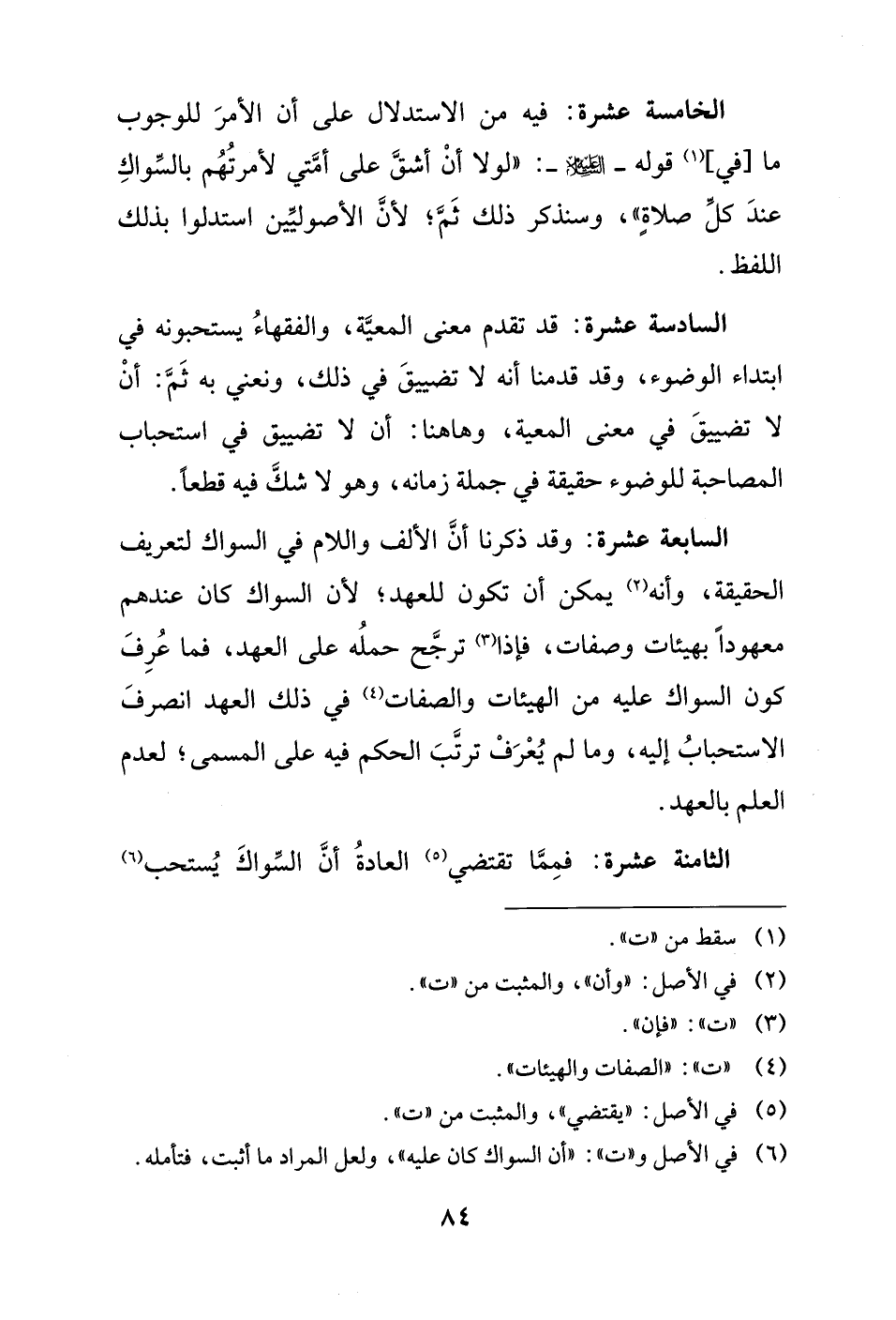 الثامنة عشرة: فمِمَّا تقتضي (¬5) العادةُ أنَّ السِّواكَ يُستحب (¬6)