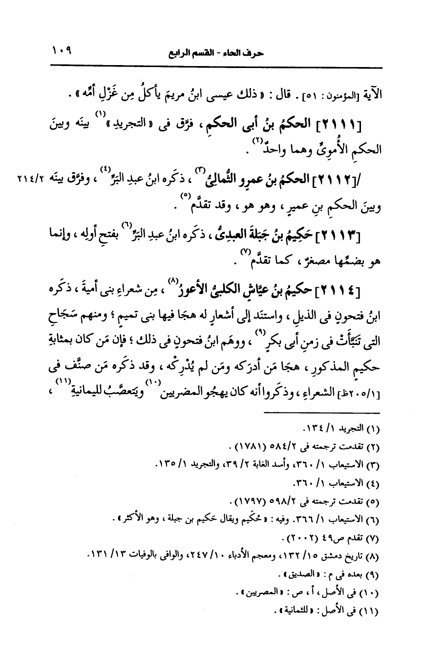 قلت: كان قتل زيد بن علي سنة اثنتين وعشرين فدل على تأخر حكيم، عَن هذه الغاية وظهر أن الإدراك له والله أعلم.