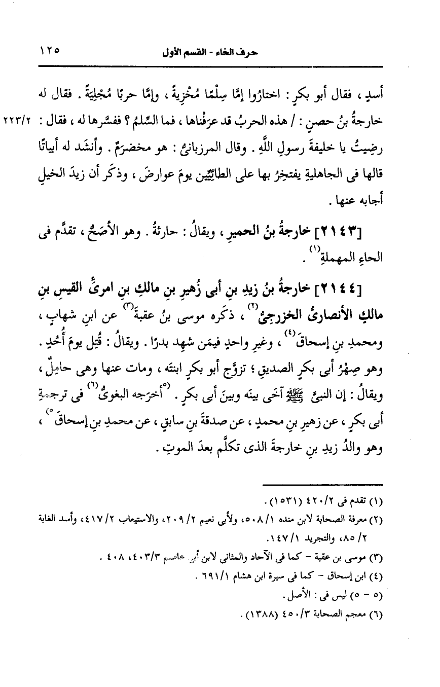 2144- خارجة بن زيد بن أبي زهير بن مالك بن امرئ القيس بن مالك، الأَنصارِيّ الخزرجي.