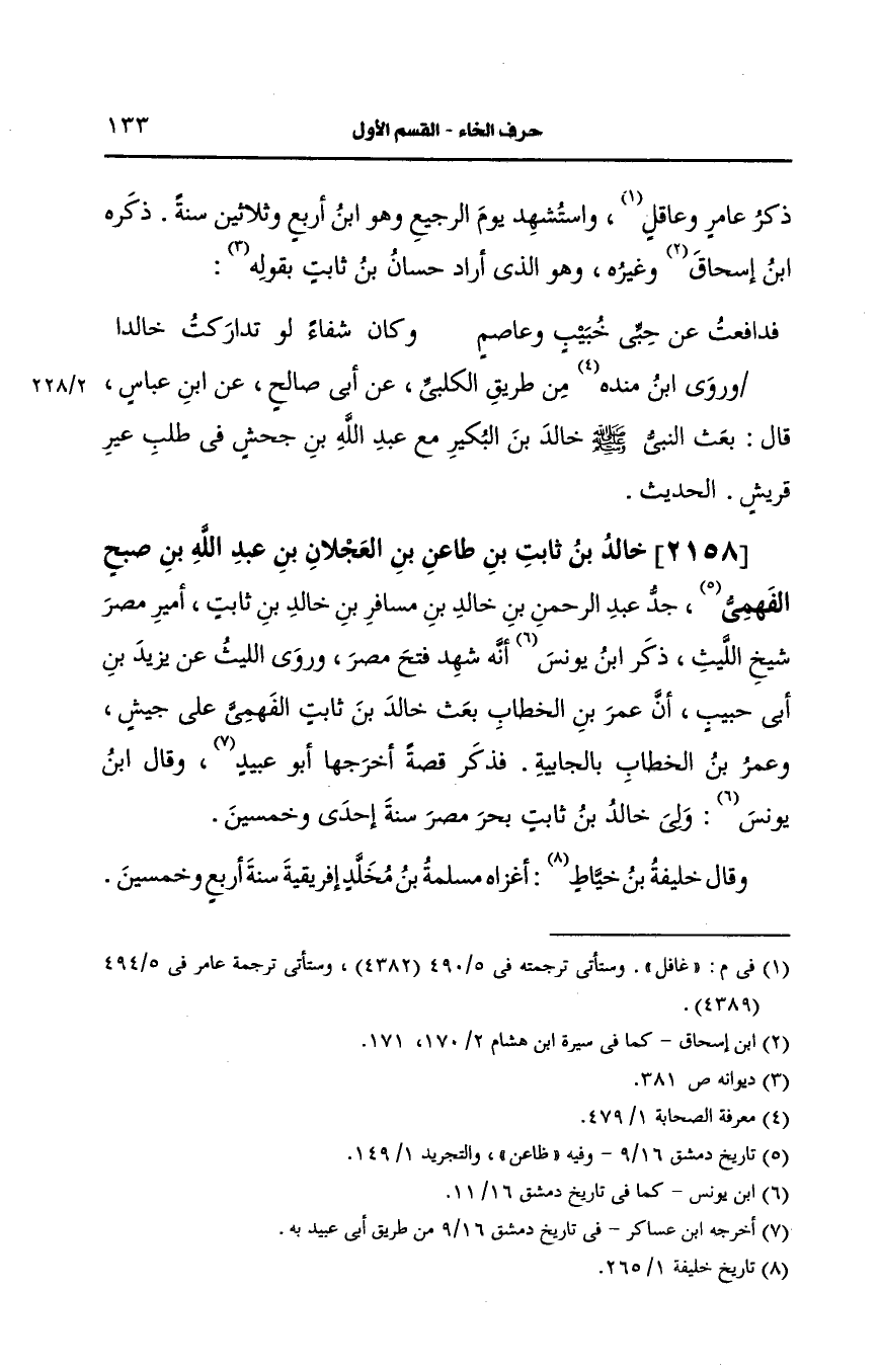 2158- خالد بن ثابت بن طاعن ابن العجلان بن عَبد الله بن صبح الفهمي جد عبد الرحمن بن خالد بن مسافر بن خالد بن ثابت أمير مصر شيخ الليث.