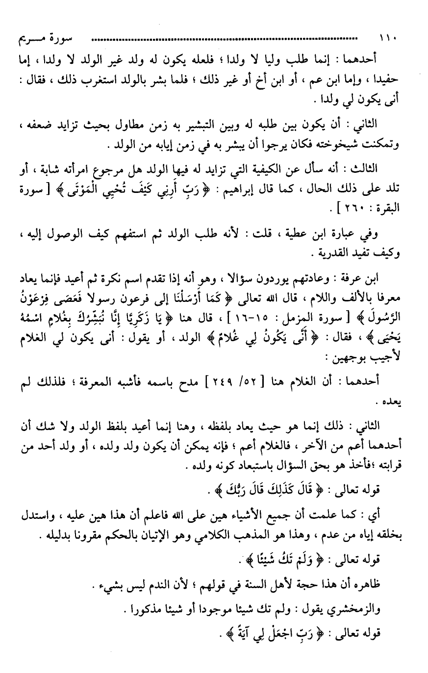 ابن عرفة: وعادتهم يوردون سؤالا، وهو أنه إذا تقدم اسم نكرة ثم أعيد فإنما يعاد معرفا بالألف واللام، قال الله تعالى (كَمَا أَرْسَلْنَا إِلَى فِرْعَوْنَ رَسُولًا (15) فَعَصَى فِرْعَوْنُ الرَّسُولَ)، قال هنا (يَا زَكَرِيَّا إِنَّا نُبَشِّرُكَ بِغُلَامٍ اسْمُهُ يَحْيَى)، فقال: (أَنَّى يَكُونُ لِي غُلَامٌ) الولد، أو يقول: أنى يكون لي الغلام [فأجيب بوجهين*]: