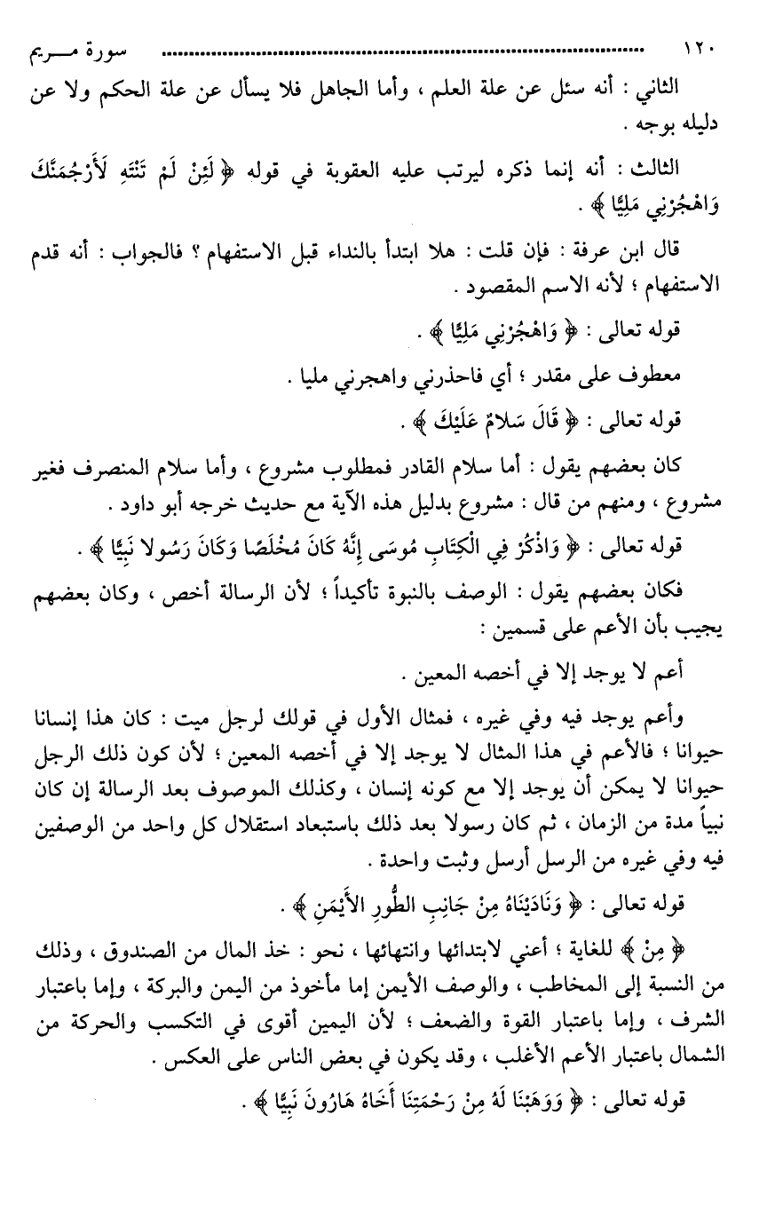 الثالث: أنه إنما ذكره ليرتب عليه العقوبة في قوله (لَئِنْ لَمْ تَنْتَهِ لَأَرْجُمَنَّكَ وَاهْجُرْنِي مَلِيًّا).