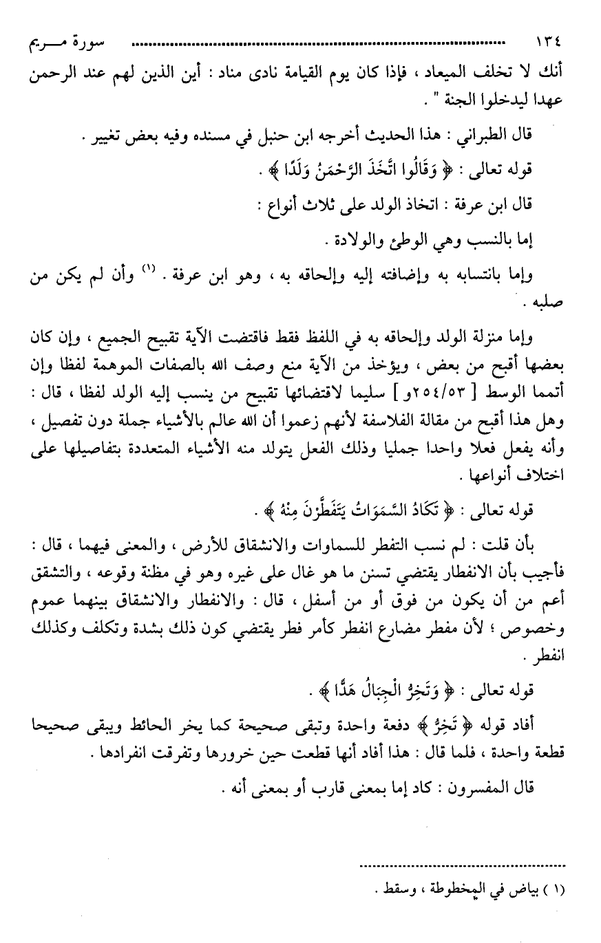 قوله تعالى: {تَكَادُ السَّمَاوَاتُ يَتَفَطَّرْنَ مِنْهُ ... (90)}