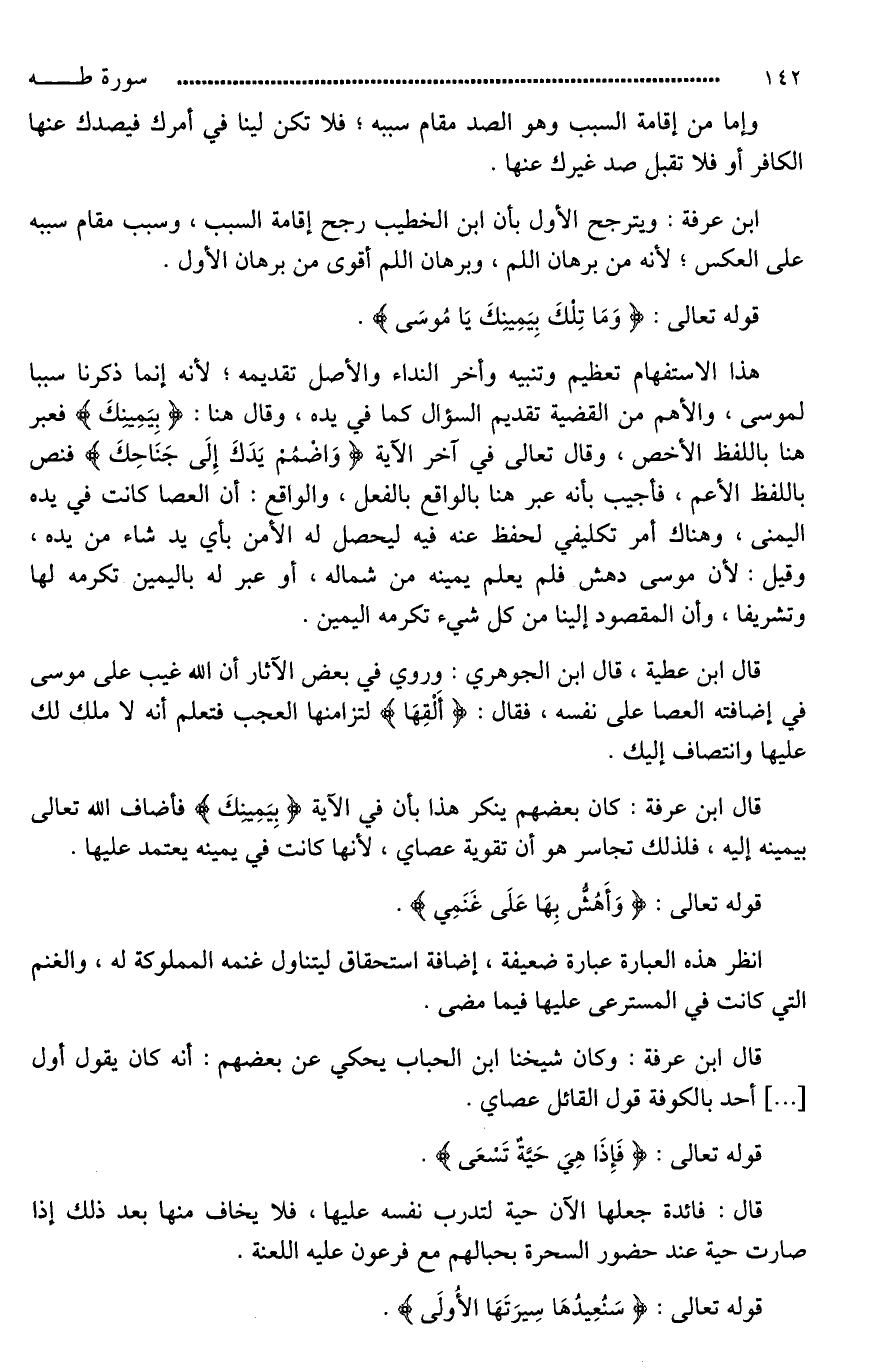 قال ابن عرفة: كان بعضهم ينكر هذا بأن في الآية (بِيَمِينِكَ) فأضاف الله تعالى بيمينه إليه، فلذلك تجاسر هو أن تقوية عصاي، لأنها كانت في يمينه يعتمد عليها.