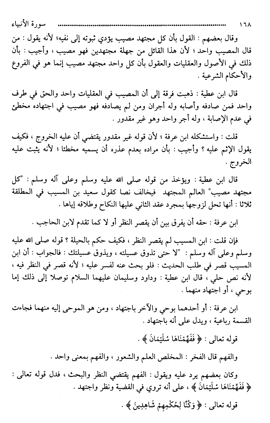 وكان بعضهم يرد عليه ويقول: الفهم يقتضي النظر والبحث، فدل قوله تعالى: (فَفَهَّمْنَاهَا سُلَيْمَانَ)، على أنه تروى في القضية ونظر واجتهد.
