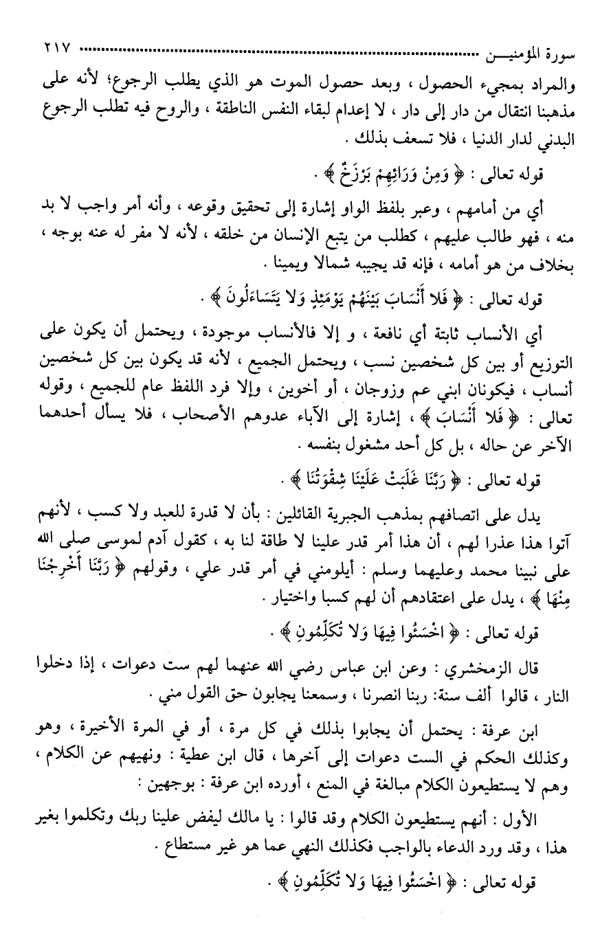 قوله تعالى: {وَمِنْ وَرَائِهِمْ بَرْزَخٌ ... (100)}