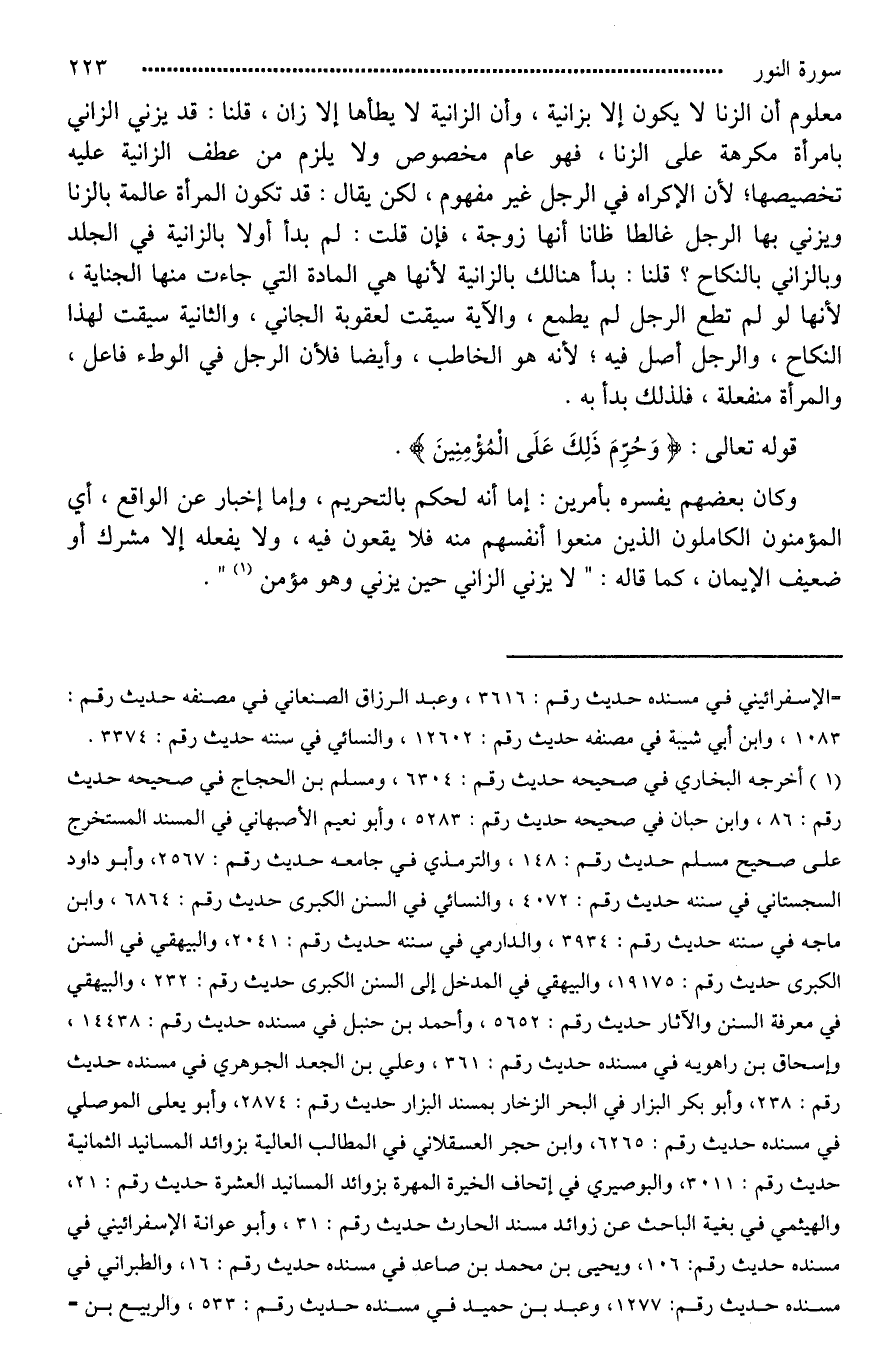 وكان بعضهم يفسره بأمرين: إما أنه [حكم بالتحريم*]، وإمَّا إخبار عن الواقع، أي المؤمنون الكاملون الذين منعوا أنفسهم منه فلا يقعون فيه، ولا يفعله إلا مشرك أو ضعيف الإيمان، كما قاله: "لَا يزني الزاني حين يزني وهو مؤمن".