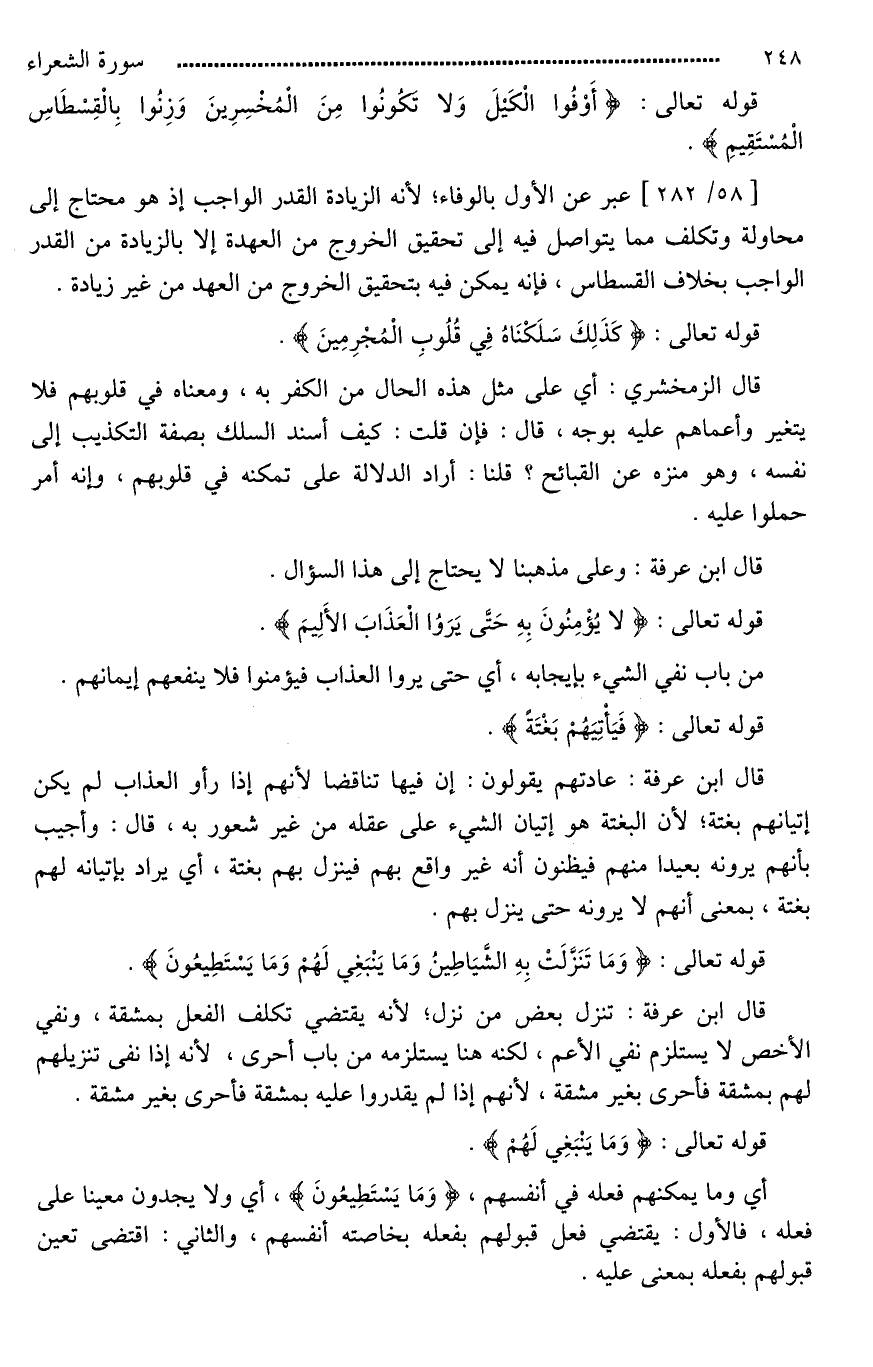 قوله تعالى: {أَوْفُوا الْكَيْلَ وَلَا تَكُونُوا مِنَ الْمُخْسِرِينَ (181) وَزِنُوا بِالْقِسْطَاسِ الْمُسْتَقِيمِ (182)}