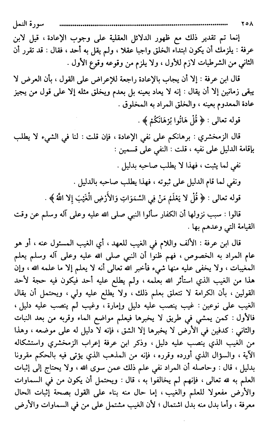 قال الزمخشري: برهانكم على نفي الإعادة، فإن قلت: لنا في الشيء لَا يطلب بإقامة الدليل على نفيه، قلت: النفي على قسمين: