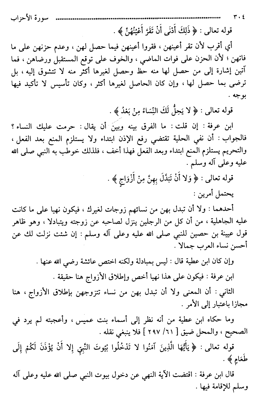 قوله تعالى: {لَا يَحِلُّ لَكَ النِّسَاءُ مِنْ بَعْدُ ... (52)}