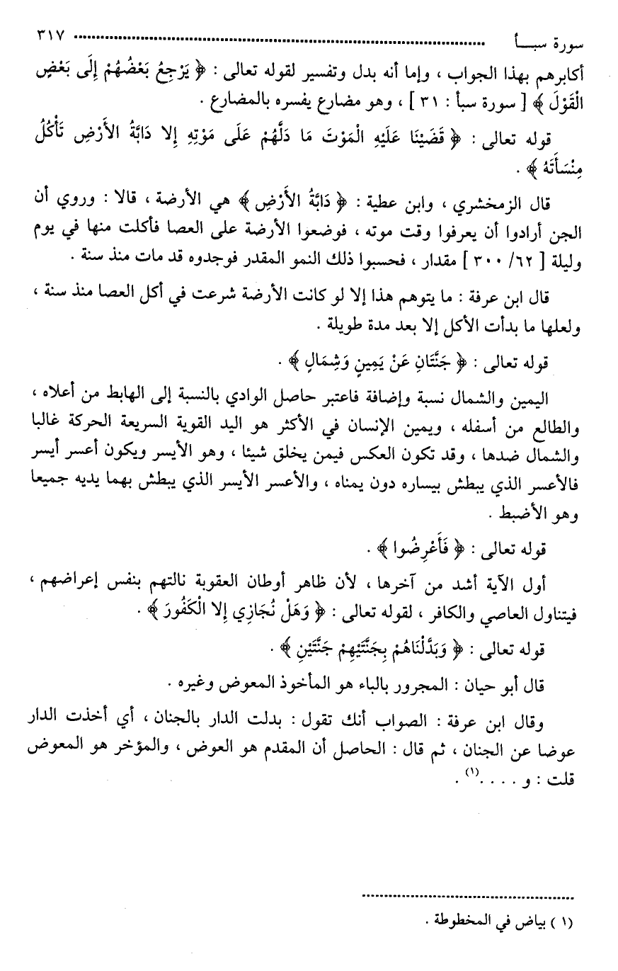 قال ابن عرفة: ما يتوهم هذا إلا لو كانت الأرضة شرعت في أكل العصا منذ سنة، ولعلها ما بدأت الأكل إلا بعد مدة طويلة.