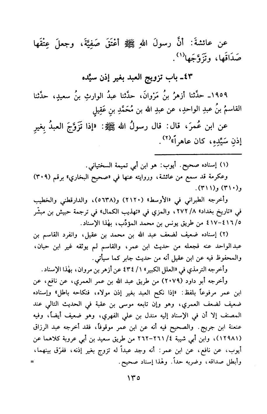 43- بَابُ تَزْوِيجِ الْعَبْدِ بِغَيْرِ إِذْنِ سَيِّدِهِ