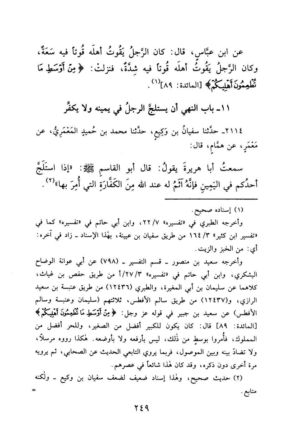 11- بَابُ النَّهْيِ أَنْ يَسْتَلِجَّ الرَّجُلُ فِي يَمِينِهِ ، وَلاَ يُكَفِّرَ