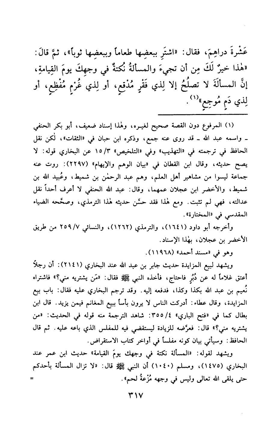 ويشهد لقوله: "المسالة نكتة في وجهك يومَ القيامة" حديث ابن عمر عند البخاري (1475)، ومسلم (1040) أن النبي - صَلَّى اللَّهُ عَلَيْهِ وَسَلَّمَ - قال: "لا تزال المسألة بأحدكم حتى يلقى الله تعالى وليس في وجهه مُزعةُ لحم". =