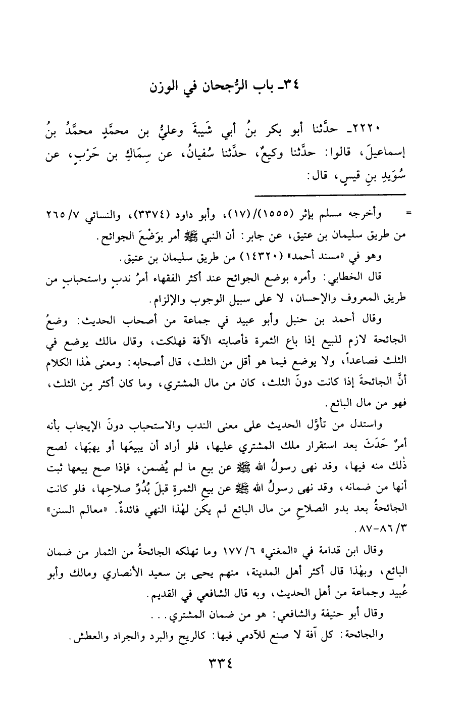 2220- حَدَّثَنَا أَبُو بَكْرِ بْنُ أَبِي شَيْبَةَ ، وَعَلِيُّ بْنُ مُحَمَّدٍ ، ءءء في الكتاب محمد بدون و , وَمُحَمَّدُ بْنُ إِسْمَاعِيلَ ، قَالُوا : حَدَّثَنَا وَكِيعٌ ، حَدَّثَنَا سُفْيَانُ ، عَنْ سِمَاكِ بْنِ حَرْبٍ ، عَنْ سُوَيْدِ بْنِ قَيْسٍ ، قَالَ : جَلَبْتُ أَنَا وَمَخْرَفَةُ الْعَبْدِيُّ بَزًّا مِنْ هَجَرَ ، فَجَاءَنَا رَسُولُ اللهِ صَلَّى الله عَليْهِ وسَلَّمَ ، فَسَاوَمَنَا سَرَاوِيلَ ، وَعِنْدَنَا وَزَّانٌ يَزِنُ بِالأَجْرِ ، فَقَالَ لَهُ النَّبِيُّ صَلَّى الله عَليْهِ وسَلَّمَ : يَا وَزَّانُ زِنْ وَأَرْجِحْ.