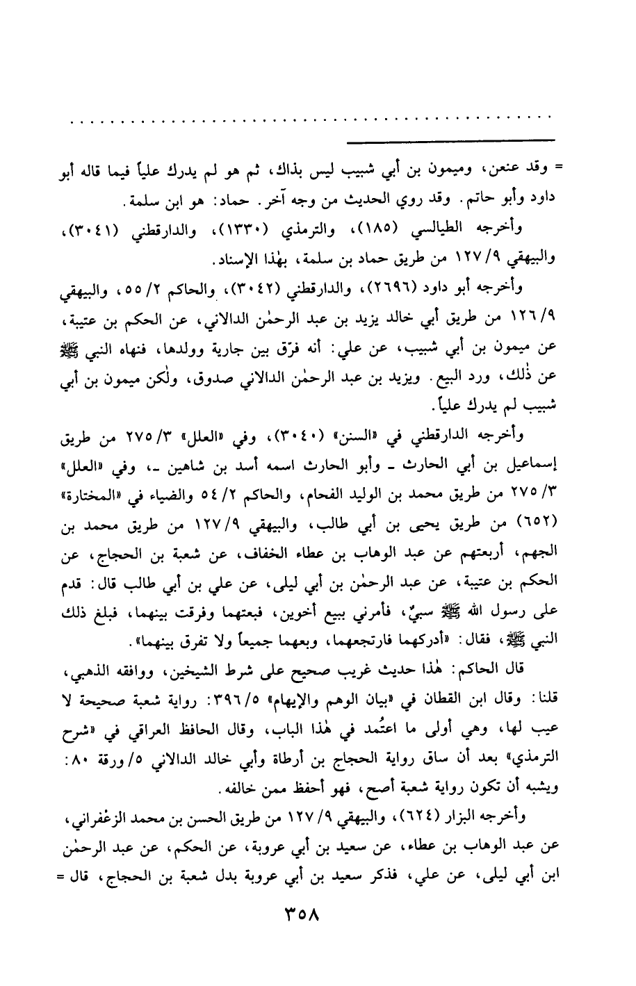 وأخرجه الدارقطني في "السُّنن" (3040)، وفي "العلل" 3/ 275 من طريق إسماعيل بن أبي الحارث -وأبو الحارث اسمه أسد بن شاهين-، وفي "العلل" 3/ 275 من طريق محمَّد بن الوليد الفحام، والحاكم 2/ 54 والضياء في "المختارة" (652) من طريق يحيي بن أبي طالب، والبيهقي 9/ 127 من طريق محمَّد بن الجهم، أربعتهم عن عبد الوهاب بن عطاء الخفاف، عن شعبة بن الحجاج، عن الحكم بن عتيبة، عن عبد الرحمن بن أبي ليلى، عن علي بن أبي طالب قال: قدم على رسول الله - صَلَّى اللَّهُ عَلَيْهِ وَسَلَّمَ - سبيٌ، فأمرني ببيع أخوين، فبعتهما وفرقت بينهما، فبلغ ذلك النبي - صَلَّى اللَّهُ عَلَيْهِ وَسَلَّمَ - فقال: "أدركهما فارتجعهما، وبعهما جميعًا ولا تفرق بينهما".