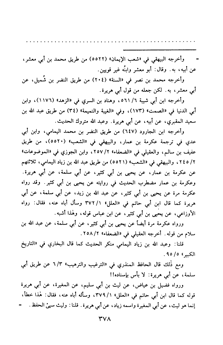 ومع ذلك قال الحافظ المنذري في "الترغيب والترهيب" 3/ 6 عن طريق أبي سلمة، عن أبي هريرة: لا بأس بإسناده!!