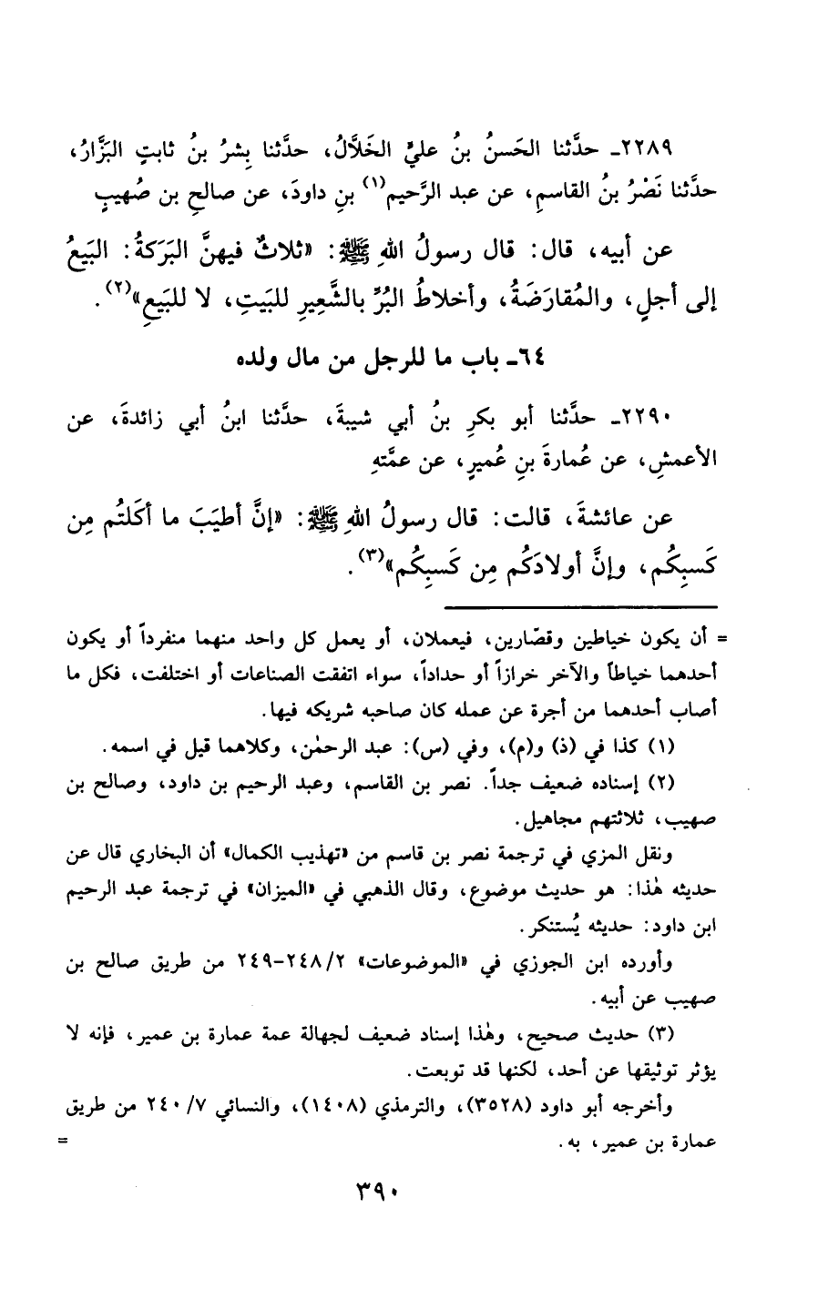 2290- حَدَّثَنَا أَبُو بَكْرِ بْنُ أَبِي شَيْبَةَ ، حَدَّثَنَا ابْنُ أَبِي زَائِدَةَ ، عَنِ الأَعْمَشِ ، عَنْ عُمَارَةَ بْنِ عُمَيْرٍ ، عَنْ عَمَّتِهِ ، عَنْ عَائِشَةَ ، قَالَتْ : قَالَ رَسُولُ اللهِ صَلَّى الله عَليْهِ وسَلَّمَ : إِنَّ أَطْيَبَ مَا أَكَلْتُمْ مِنْ كَسْبِكُمْ ، وَإِنَّ أَوْلاَدَكُمْ مِنْ كَسْبِكُمْ.
