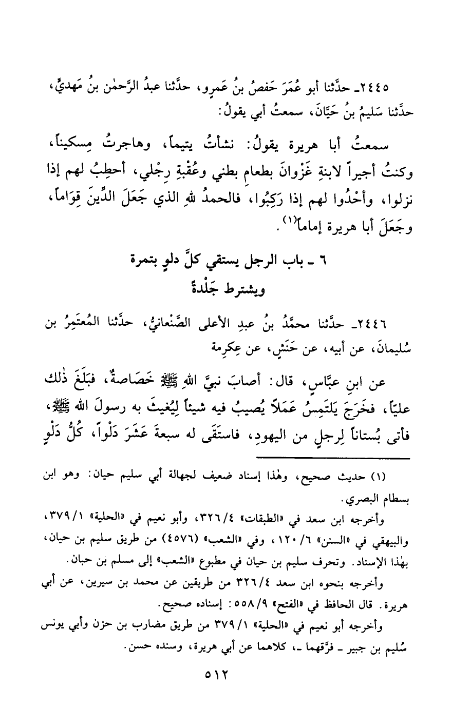 6- بَابُ الرَّجُلِ يَسْتَقِي كُلَّ دَلْوٍ بِتَمْرَةٍ وَيَشْتَرِطُ جَلْدَةً