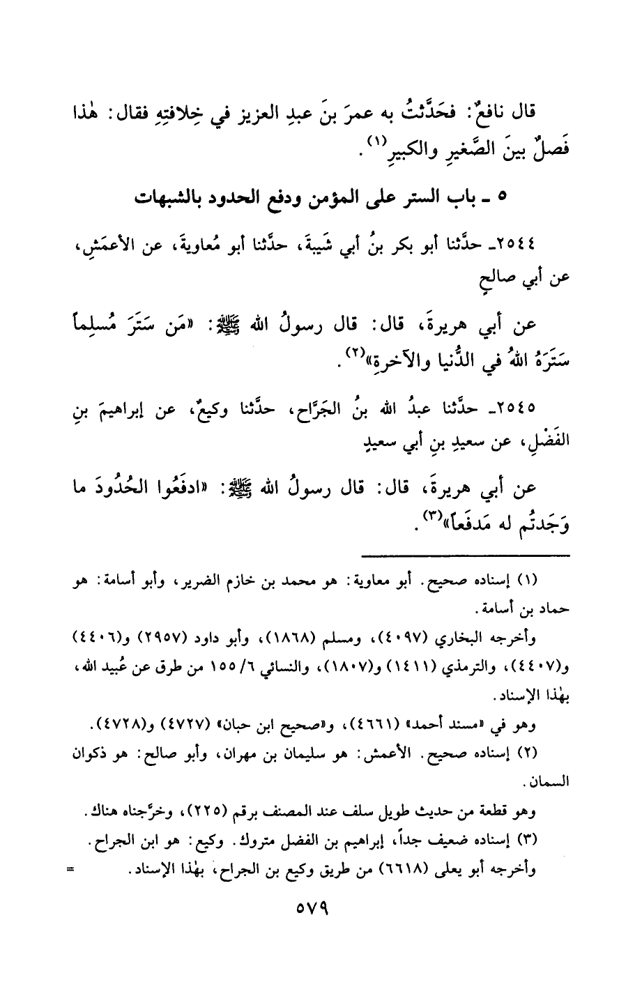 5- بَابُ السِّتْرِ عَلَى الْمُؤْمِنِ وَدَفْعِ الْحُدُودِ بِالشُّبُهَاتِ