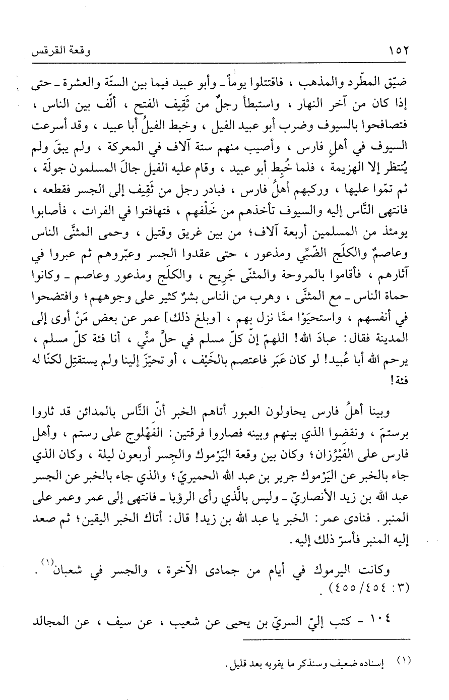 ١٠٤ - كتب إليّ السريّ بن يحيى عن شعيب، عن سيف، عن المجالد