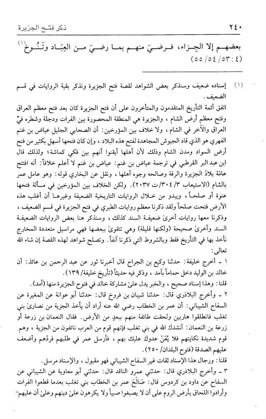 (١) إسناده ضعيف وسنذكر بعض الشواهد لقصة فتح الجزيرة ونذكر بقية الروايات في قسم الضعيف.