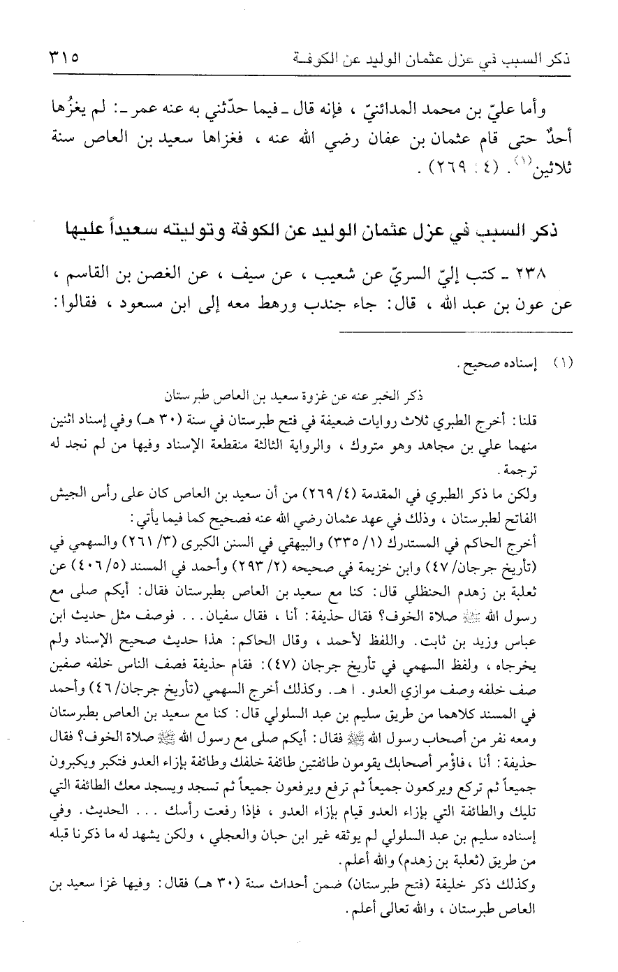 ولكن ما ذكر الطبري في المقدمة (٤/ ٢٦٩) من أن سعيد بن العاص كان على رأس الجيش الفاتح لطبرستان، وذلك في عهد عثمان رضي الله عنه فصحيح كما فيما يأتي: