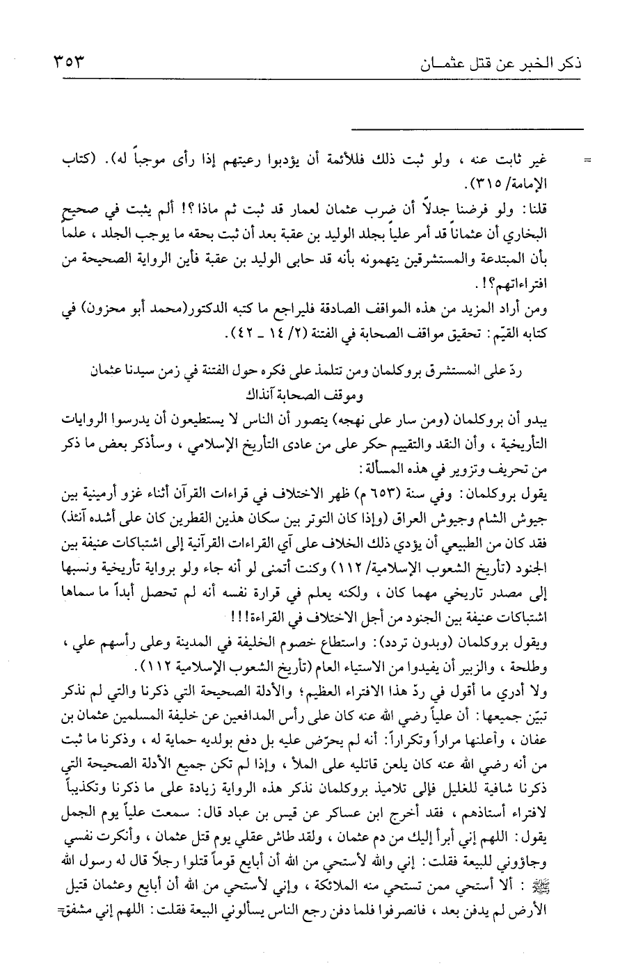 ردّ على المستشرق بروكلمان ومن تتلمذ على فكره حول الفتنة في زمن سيدنا عثمان وموقف الصحابة آنذاك
