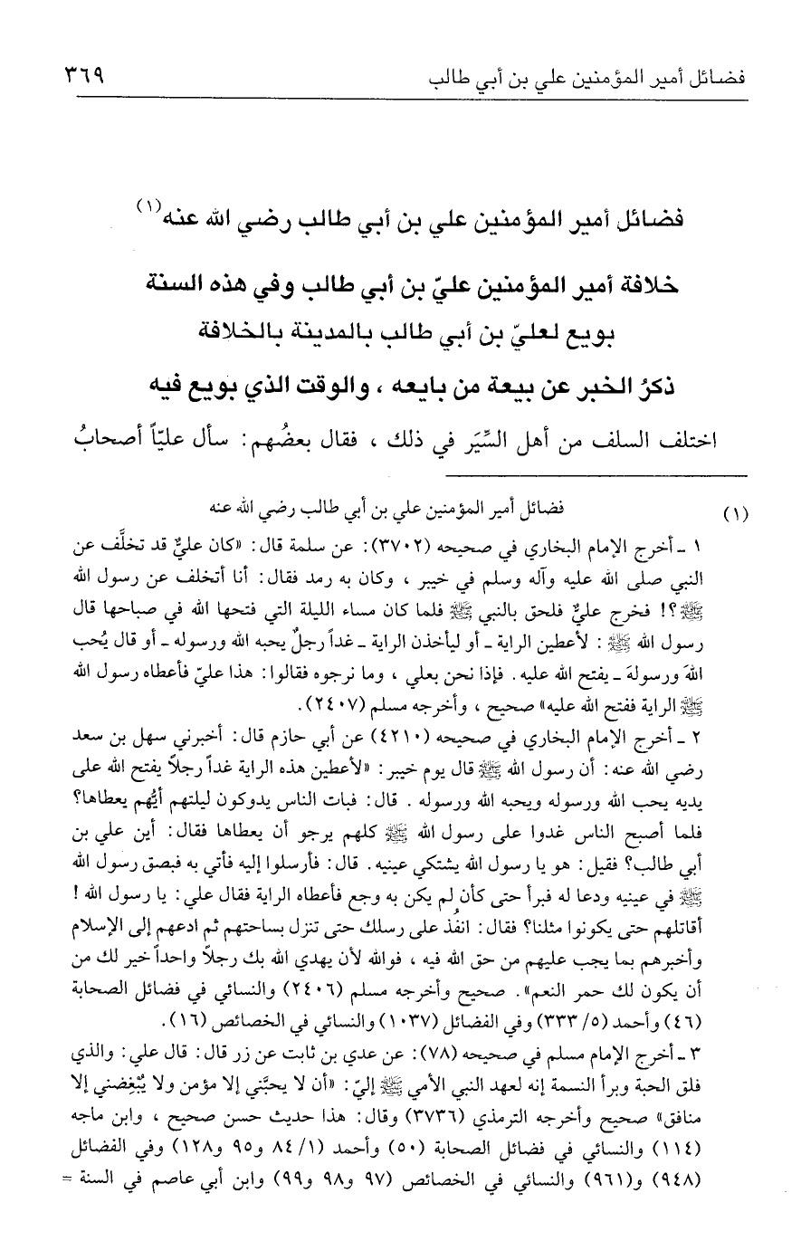 فضائل أمير المؤمنين علي بن أبي طالب - رضي الله عنه - (١)