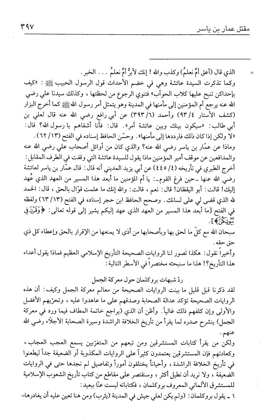 ردّ شبهات بروكلمان حول معركة الجمل