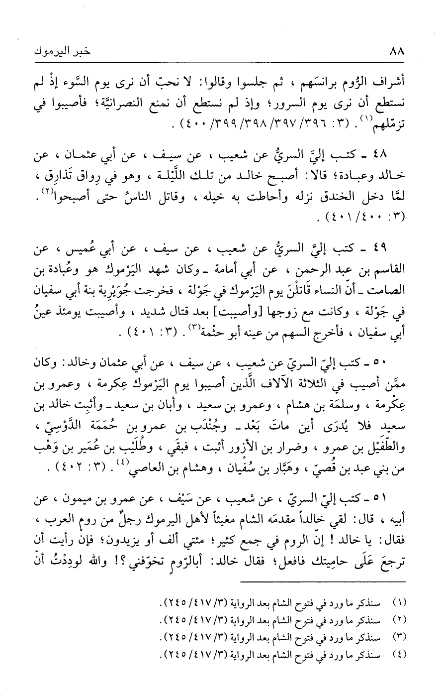 (١) سنذكر ما ورد في فتوح الشام بعد الرواية (٣/ ٤١٧ / ٢٤٥).