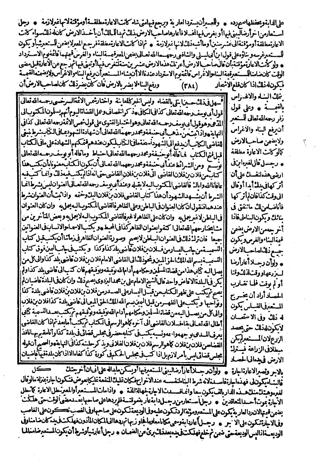 وَيَكْتُبُ الْأَسْمَاءَ وَالْأَنْسَابَ فِي الْعُنْوَانَيْنِ جَمِيعًا فَإِنْ تَرَكَ ذَلِكَ فِي الْعُنْوَانِ الْبَاطِنِ لَا يَصِحُّ، وَصُورَةُ الْعِنْوَانِ الظَّاهِرِ فِي زَمَانِنَا أَنْ يَكْتُبَ قَبْلَ كِتَابِ التَّسْمِيَةِ مِنْ جَانِبِ الْيَسَارِ مِنْ فُلَانِ بْنِ فُلَانٍ قَاضِي بَلَدِ كَذَا وَكَذَا، وَيَكْتُبُ فِي جَانِبِ الْيَمِينِ فَوْقَ كِتَابِ التَّسْمِيَةِ بِسْمِ اللَّهِ الْمَلِكِ الْحَقِّ الْمُبِينِ وَنَحْوَ ذَلِكَ إلَى الْقَاضِي الْإِمَامِ فُلَانِ بْنِ فُلَانٍ قَاضِي بَلَدِ كَذَا، وَإِلَى كُلِّ مَنْ يَصِلُ إلَيْهِ كِتَابِي هَذَا مِنْ قُضَاةِ الْمُسْلِمِينَ وَحُكَّامِهِمْ أَدَامَ اللَّهُ تَوْفِيقَهُ وَتَوْفِيقَهُمْ. فَإِنْ كَتَبَ إلَى قَاضِي بَلَدِ كَذَا وَلَمْ يَكُنْ فِي الْبَلْدَةِ إلَّا قَاضٍ وَاحِدٌ قَالَ الشَّيْخُ الْإِمَامُ عَلِيُّ بْنُ مُحَمَّدٍ الْبَزْدَوِيُّ: يَصِحُّ ذَلِكَ، وَإِنْ كَانَ فِي الْبَلْدَةِ قَاضِيَانِ لَمْ يَصِحَّ، ثُمَّ يَكْتُبُ عَلَى ظَهْرِ الْكِتَابِ مِنْ قِبَلِ الْيَسَارِ عَلَى الصَّدْرِ مِنْ فُلَانِ بْنِ فُلَانِ بْنِ فُلَانٍ قَاضِي بَلْدَةِ كَذَا وَنَوَاحِيهَا، وَيَكْتُبُ عَلَى الظَّهْرِ مِنْ قِبَلِ الْيَمِينِ بِسْمِ اللَّهِ الْمَلِكِ الْحَقِّ الْمُبِينِ إلَى قَاضِي بَلْدَةِ كَذَا فُلَانِ بْنِ فُلَانٍ، وَإِلَى كُلِّ مَنْ يَصِلُ إلَيْهِ مِنْ قُضَاةِ الْمُسْلِمِينَ وَحُكَّامِهِمْ أَدَامَ اللَّهُ تَوْفِيقَهُ وَتَوْفِيقَهُمْ، ثُمَّ يَكْتُبُ بَعْدَ التَّسْمِيَةِ كِتَابِي أَطَالَ اللَّهُ تَعَالَى بَقَاءَ فُلَانٍ الْقَاضِي إلَى آخِرِهِ كَمَا هُوَ الرَّسْمُ فِي الْكِتَابِ، ثُمَّ يَكْتُبُ أَمَّا بَعْدُ، ثُمَّ إذَا كَانَ الْقَاضِي يَعْرِفُ الْمُدَّعِي بِوَجْهِهِ وَاسْمِهِ وَنَسَبِهِ يَكْتُبُ فِي كِتَابِهِ: حَضَرَ فِي مَجْلِسِ قَضَائِي فِي بَلْدَةِ كَذَا وَأَنَا مُقِيمٌ بِهَا نَافِذَ الْقَضَاءِ مِنْ فُلَانِ بْنِ فُلَانٍ كَمَا هُوَ الرَّسْمُ فُلَانُ بْنُ فُلَانٍ الْفُلَانِيُّ وَيَذْكُرُ حِلْيَتَهُ، كَذَا فِي النِّهَايَةِ وَالصَّحِيحُ أَنَّ قَوْلَهُ: مَجْلِسُ قَضَائِي لَيْسَ بِأَمْرٍ لَازِمٍ بَلْ إذَا كَتَبَ فِي مَجْلِسِ الْحُكْمِ فِي كُورَةِ كَذَا كَفَاهُ إلَّا إذَا كَانَ بَلْدَةٌ فِيهَا قَاضِيَانِ