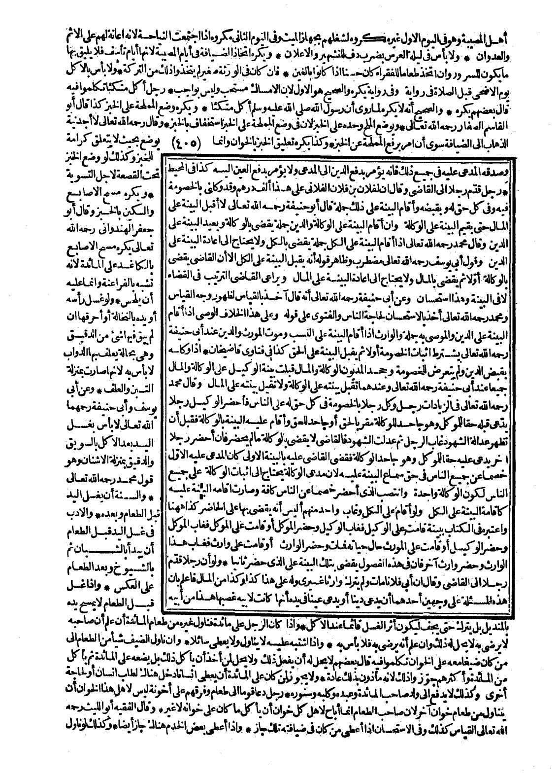 وَقَالَ مُحَمَّدٌ - رَحِمَهُ اللَّهُ تَعَالَى - فِي الزِّيَادَاتِ: رَجُلٌ وَكَّلَ رَجُلًا بِالْخُصُومَةِ فِي كُلِّ حَقٍّ لَهُ عَلَى النَّاسِ فَأَحْضَرَ الْوَكِيلُ رَجُلًا يَدَّعِي قِبَلَهُ حَقًّا لِلْمُوَكِّلِ وَهُوَ جَاحِدٌ لِلْوَكَالَةِ مُقِرٌّ بِالْحَقِّ أَوْ جَاحِدٌ لِلْحَقِّ وَأَقَامَ عَلَيْهِ الْبَيِّنَةَ بِالْوَكَالَةِ، فَقَبْلَ أَنْ تَظْهَرَ عَدَالَةُ الشُّهُودِ غَابَ الرَّجُلُ ثُمَّ عُدِّلَتْ الشُّهُودُ؛ فَالْقَاضِي لَا يَقْضِي بِالْوَكَالَةِ مَا لَمْ يَحْضُرْ فَإِنْ أَحْضَرَ رَجُلًا آخَرَ يَدَّعِي عَلَيْهِ حَقًّا لِلْمُوَكِّلِ وَهُوَ جَاحِدُ الْوَكَالَةِ فَقَضَى الْقَاضِي عَلَيْهِ بِالْبَيِّنَةِ الْأُولَى كَانَ الْمُدَّعَى عَلَيْهِ الْأَوَّلُ خَصْمًا عَنْ جَمِيعِ النَّاسِ فِي حَقِّ سَمَاعِ الْبَيِّنَةِ عَلَيْهِ؛ لِأَنَّ مُدَّعِي الْوَكَالَةِ يَحْتَاجُ إلَى إثْبَاتِ الْوَكَالَةِ عَلَى جَمِيعِ النَّاسِ لِكَوْنِ الْوَكَالَةِ وَاحِدَةً وَانْتَصَبَ الَّذِي أَحْضَرَ خَصْمًا عَنْ النَّاسِ كَافَّةً وَصَارَتْ إقَامَةُ الْبَيِّنَةِ عَلَيْهِ كَإِقَامَةِ الْبَيِّنَةِ عَلَى الْكُلِّ، وَلَوْ أَقَامَ عَلَى الْكُلِّ وَغَابَ وَاحِدٌ مِنْهُمْ أَلَيْسَ أَنَّهُ يَقْضِي بِهَا عَلَى الْحَاضِرِ؟ كَذَا هَهُنَا وَاعْتَبَرَهُ فِي الْكِتَابِ بِبَيِّنَةٍ قَامَتْ عَلَى الْوَكِيلِ فَغَابَ الْوَكِيلُ وَحَضَرَ الْمُوَكِّلُ، أَوْ قَامَتْ عَلَى الْمُوَكِّلِ فَغَابَ الْمُوَكِّلُ وَحَضَرَ الْوَكِيلُ، أَوْ قَامَتْ عَلَى الْمُوَرِّثِ حَالَ حَيَاتِهِ فَمَاتَ وَحَضَرَ الْوَارِثُ، أَوْ قَامَتْ عَلَى وَارِثٍ فَغَابَ هَذَا الْوَارِثُ وَحَضَرَ وَارِثٌ آخَرُ - فَإِنَّ فِي هَذِهِ الْفُصُولِ يَقْضِي بِتِلْكَ الْبَيِّنَةِ عَلَى الَّذِي حَضَرَ ثَانِيًا.