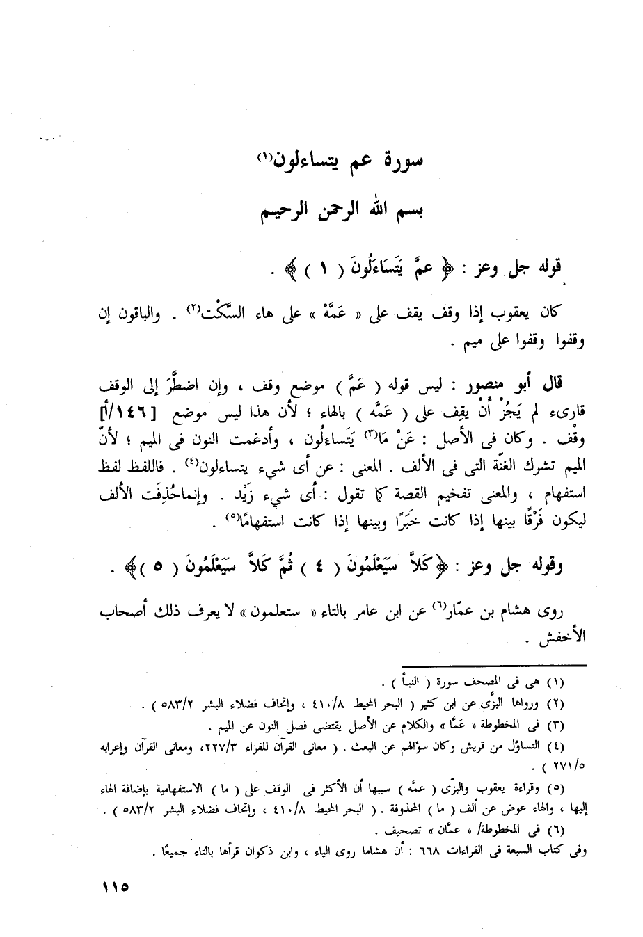 كان يعقوب إذا وقف يقف على (عَمهْ) على هاء السكت.