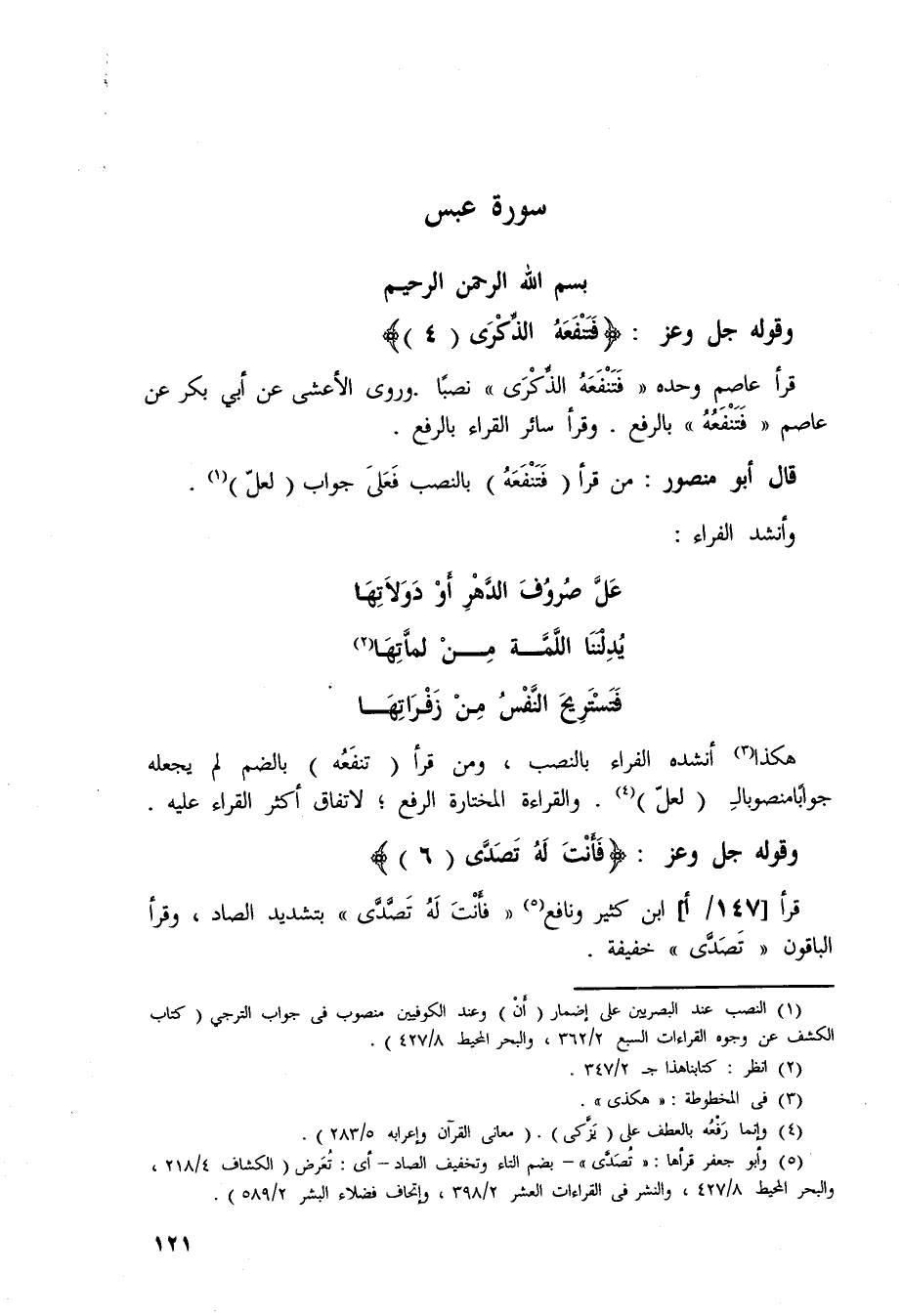 قرأ عاصِم وحده (فَتَنْفَعَهُ الذِّكْرَى) ، نصبًا.