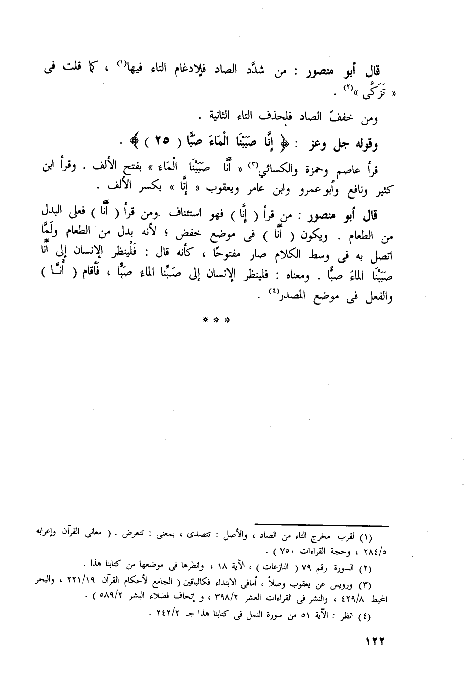 قرأ عاصم وحمزة والكسائي (أَنَّا صَبَبْنَا الْمَاءَ) بفتح الألف.