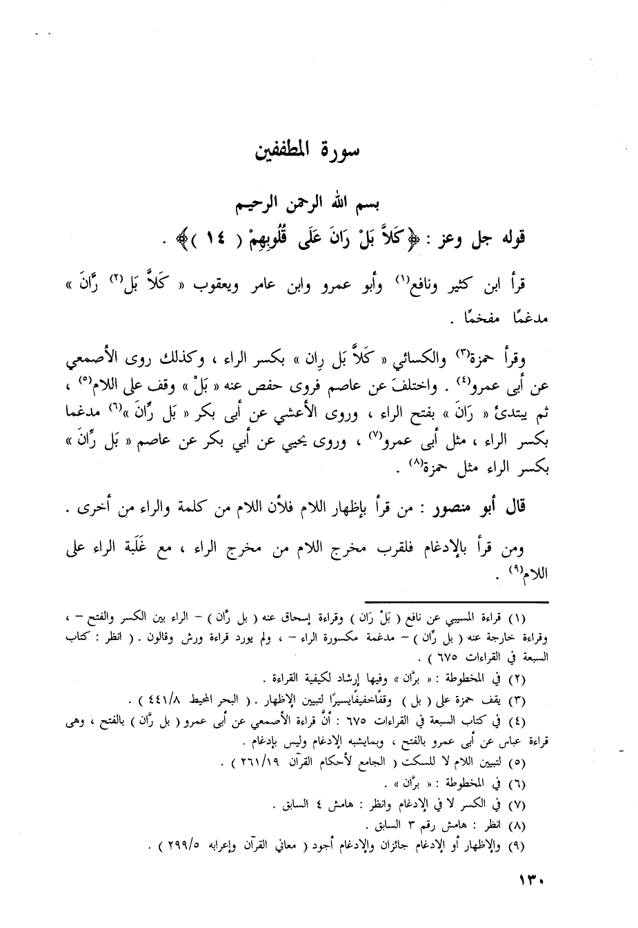 قرأ ابن كثيرٍ ونافع وأبو عمرو وابن عامر ويعقوب (كَلاَّ بَلْ رَانَ)