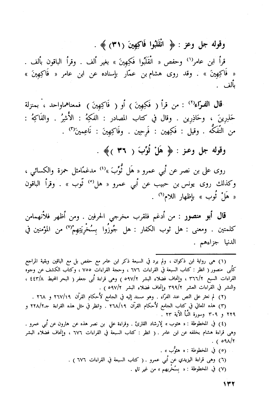 قرأ ابن عامر وحفص (انْقَكبوا فَكِهِينَ) بغير ألف.