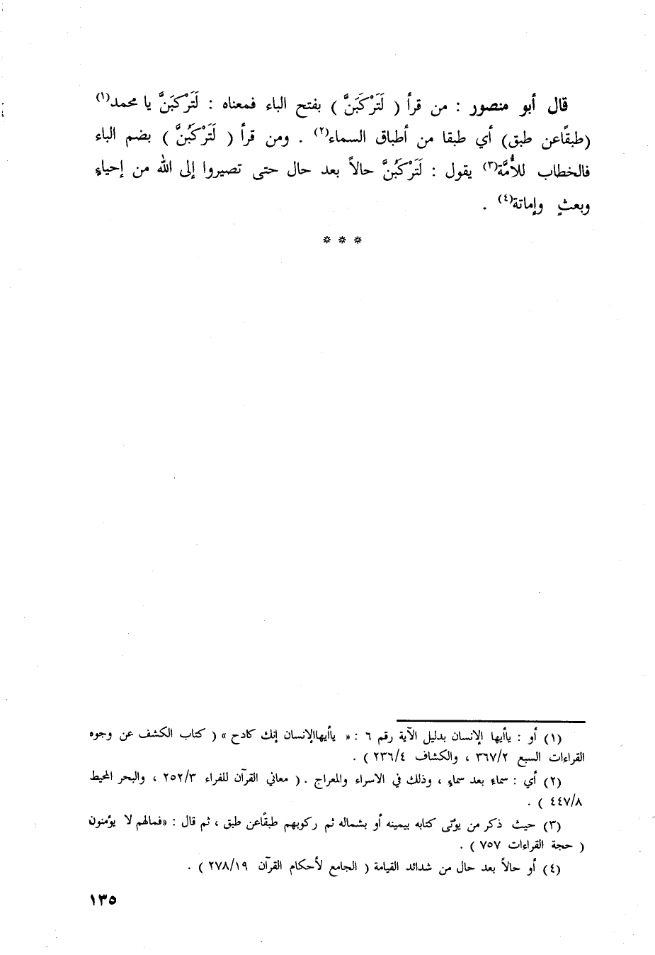 ومن قرأ ((لَتَرْكَبُنَّ) بضم الباء فالخطاب للأمة يقول: (لَتَرْكَبُنَّ حالاً بعد حال حتى تصيروا إلى الله من إحياء وبعثٍ وإماتةٍ.