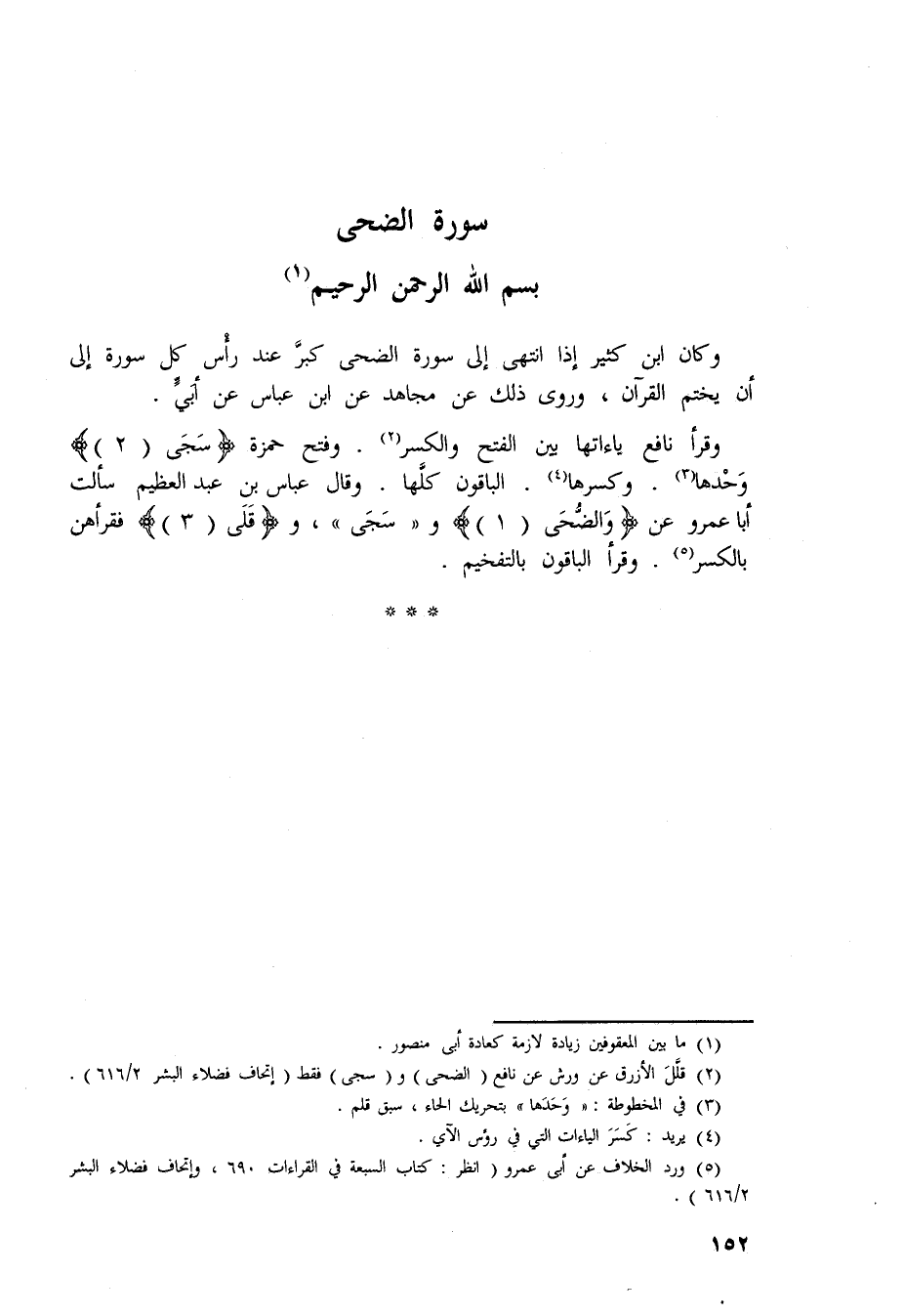 وكان ابن كثير إذا انتهى إلى سورة الضحى كبر عند رأس كل سورة إلى
