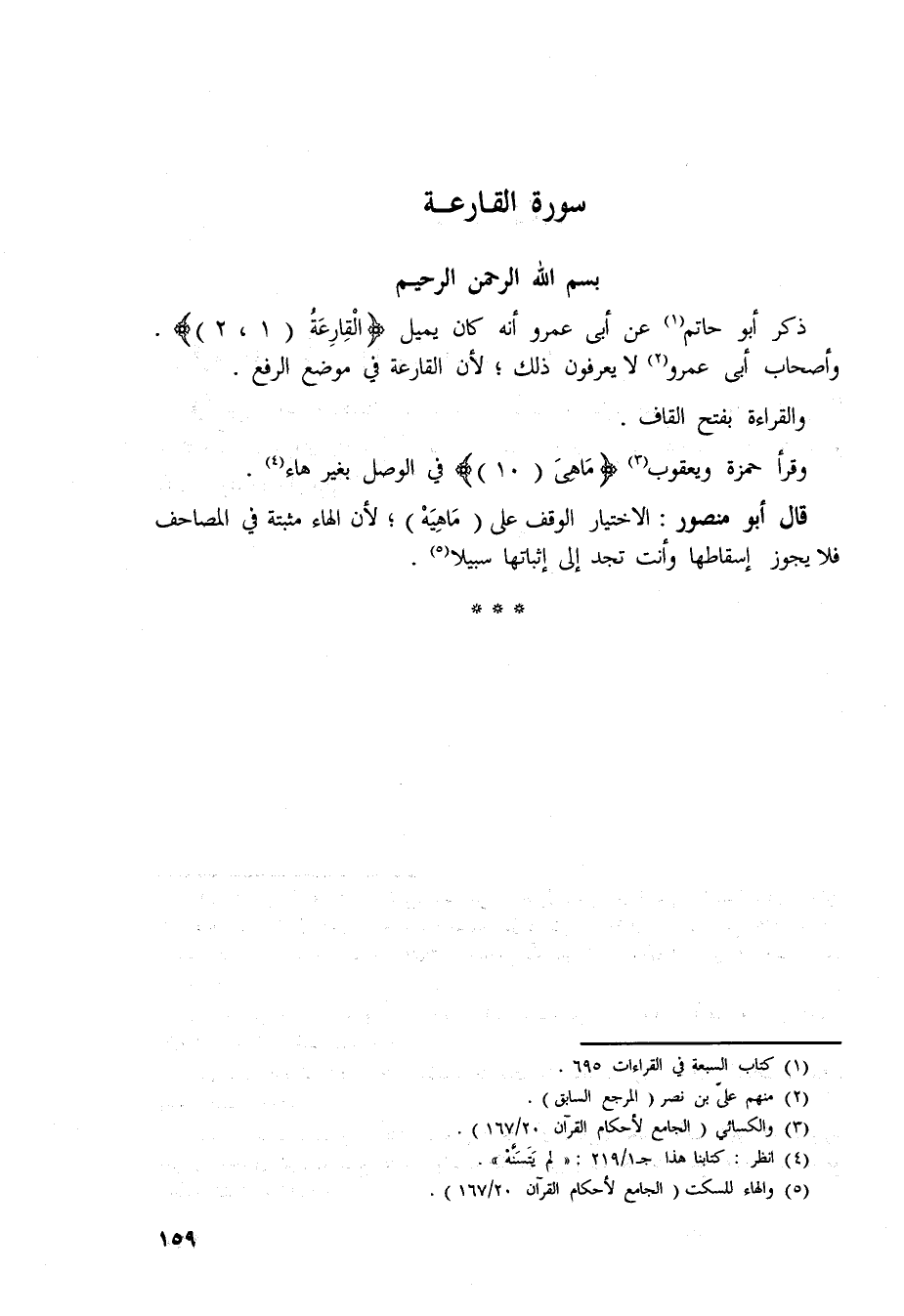 وأصحاب أبي عمرو لا يعرفون ذلك؛ لأن القارعة في موضع الرفع.