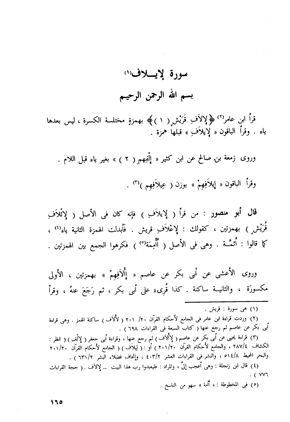 قال أبو منصور: من قرأ (لإيلاَفِ) فإنه كان فى الأصل (لإئْلاَفِ قُرَيْشٍ)