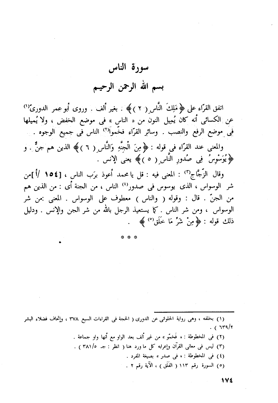 وروى أبو عمر الدوري عن الكسائي أنه كان يُمِيل النون من (النَّاسِ)