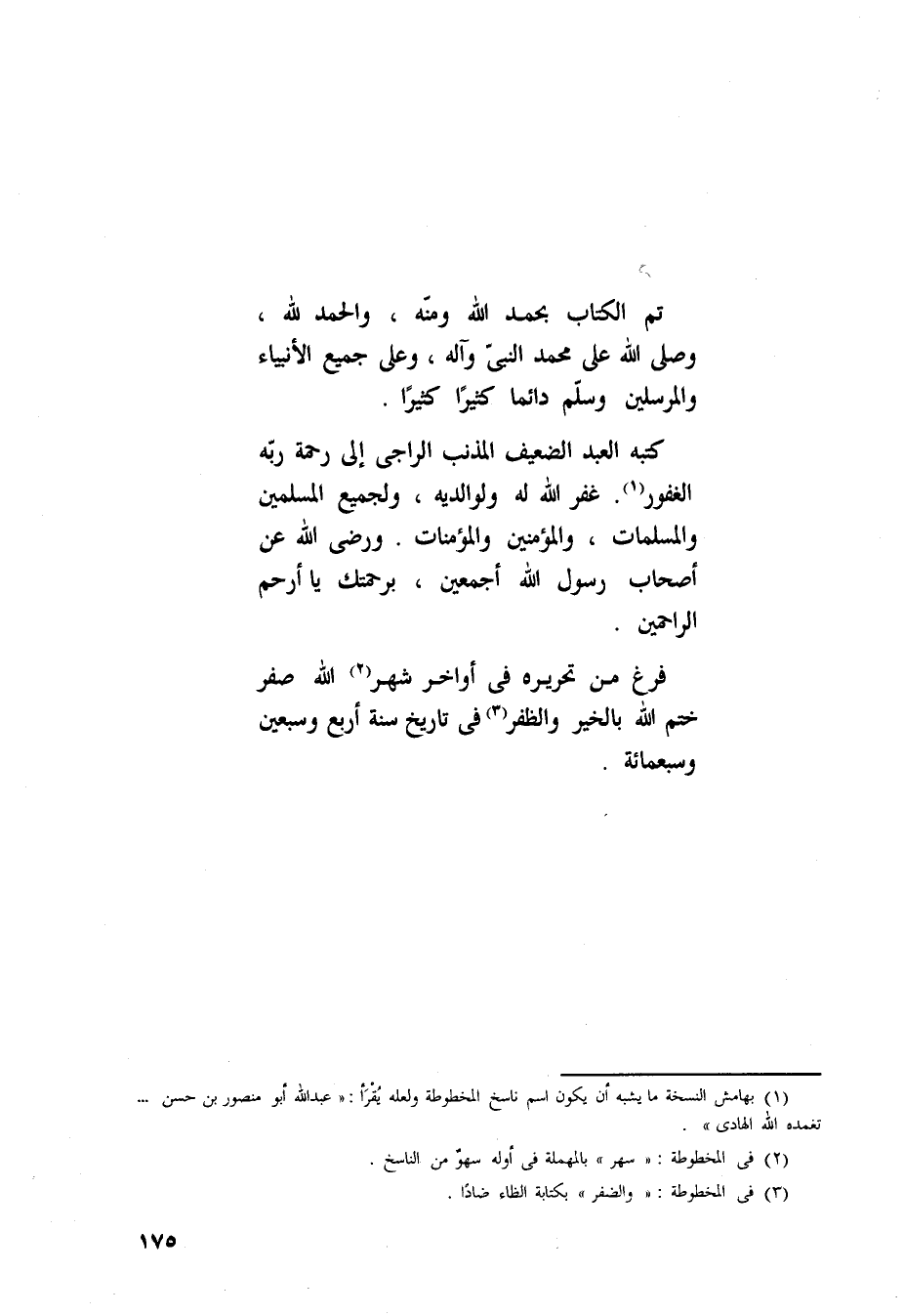 فرغ من تحريره فى أواخر شهر اللَّهِ صفر