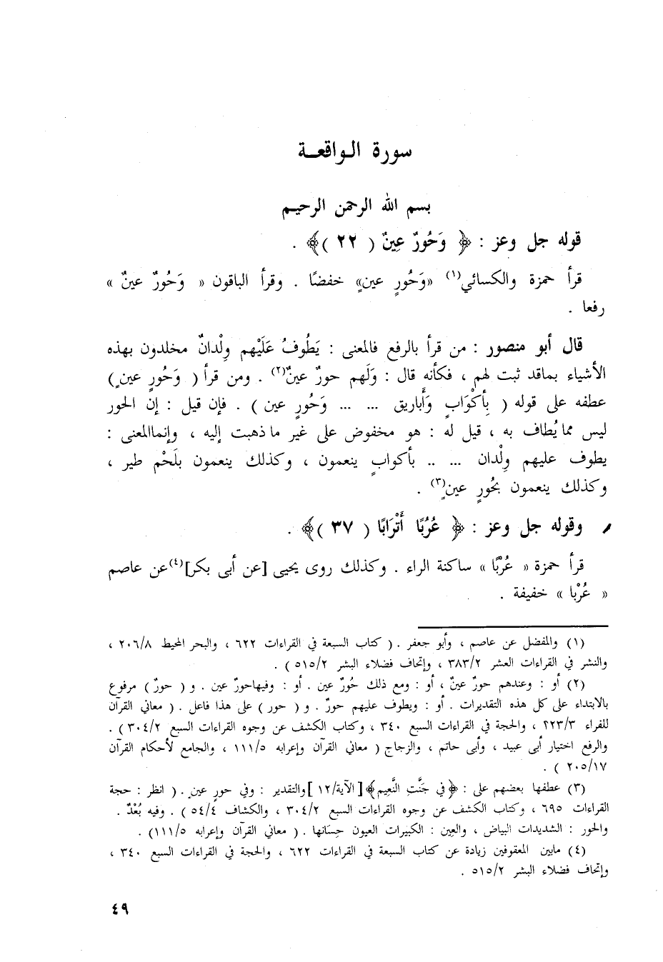 قرأ حمزة والكسائي (وَحُورٍ عِينٍ) خافضًا.