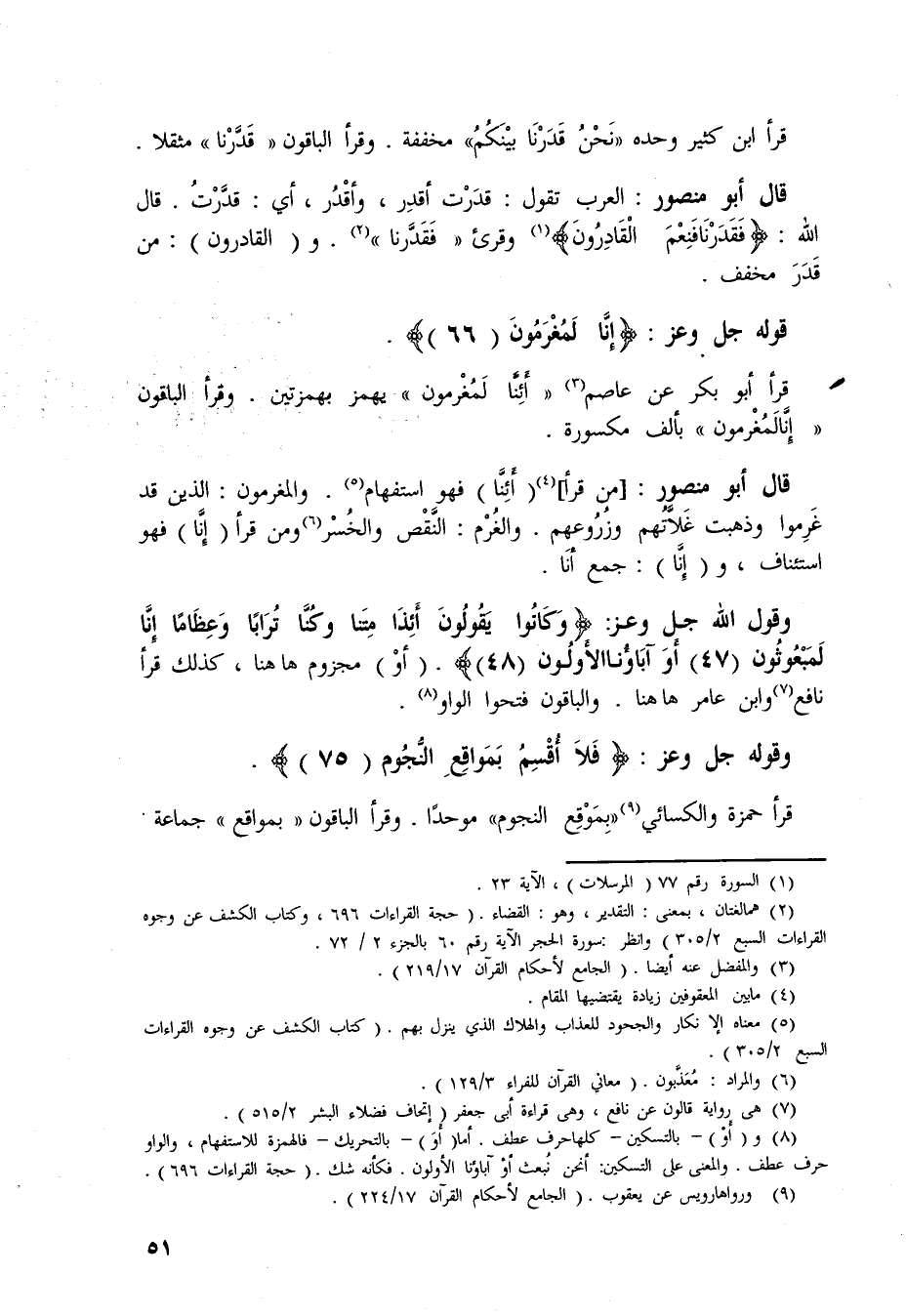 وقوله جلَّ وعزَّ: (فَلَا أُقْسِمُ بِمَوَاقِعِ النُّجُومِ (75) .