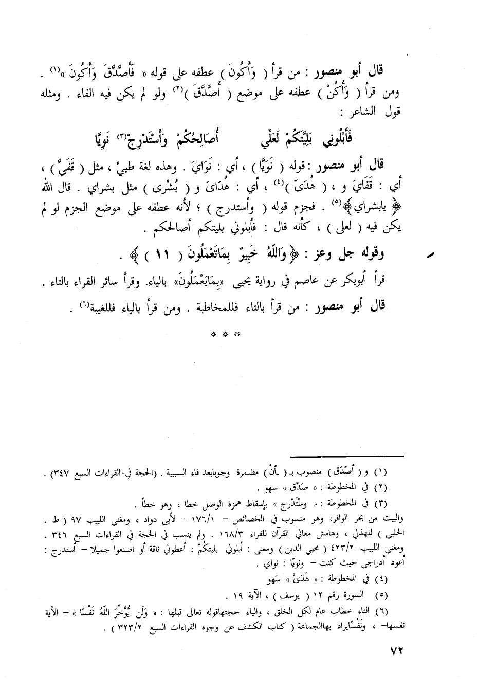 قال أبو منصور: من قرأ (وَأكُونَ) عطفه على قوله (فأصَّدَّقَ وَأكُونَ) .
