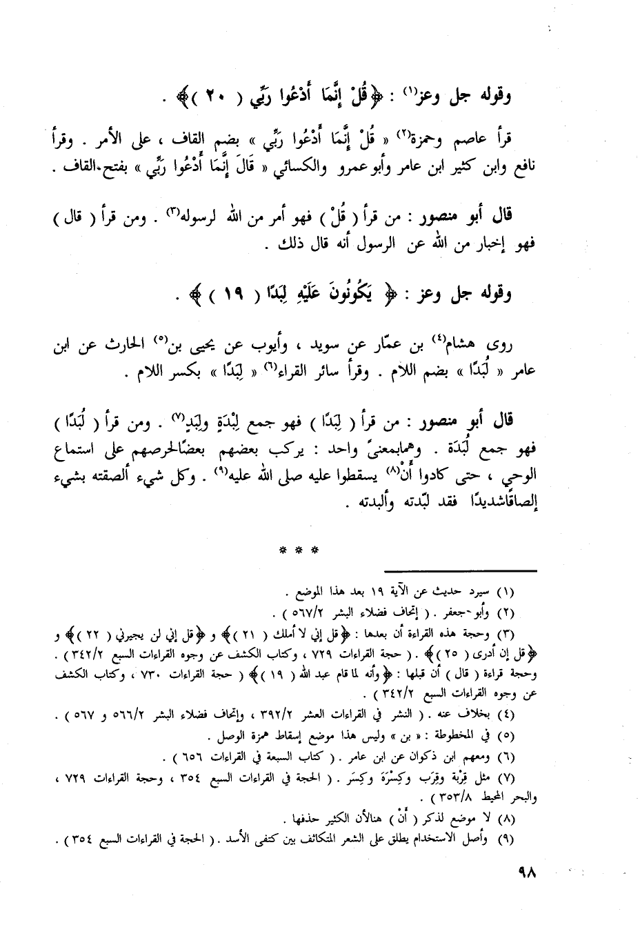 قرأ عاصم وحمزة (قُلْ إِنَّمَا أَدْعُو رَبِّي) بضم القاف، على الأمر.