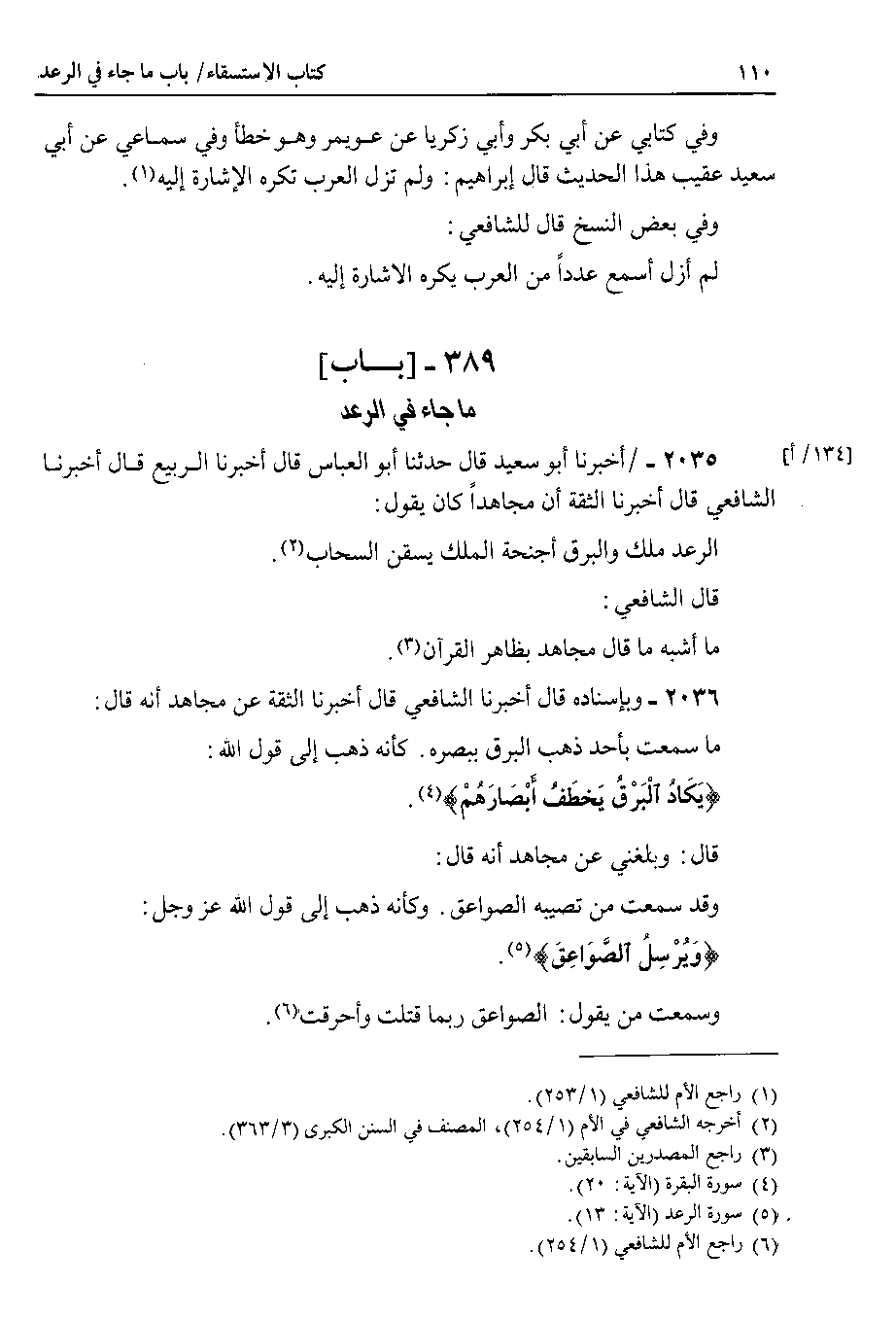 2035 - أخبرنا أبو سعيد قال حدثنا أبو العباس قال أخبرنا الربيع قال أخبرنا الشافعي قال أخبرنا الثقة أن مجاهداً كان يقول الرعد ملك والبرق أجنحة الملك يسقن السحاب.